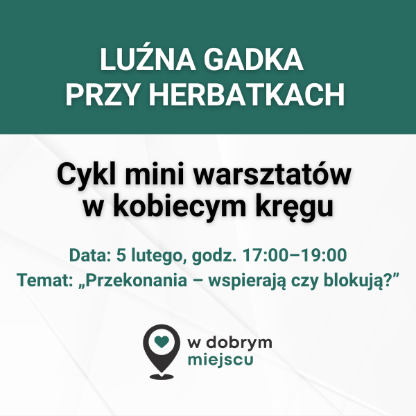 „Luźna gadka przy herbatkach” to cykl kameralnych spotkań w kobiecym kręgu – bez pośpiechu, bez ocen, za to z uważnością, rozmową i ciepłą atmosferą. To przestrzeń na zatrzymanie, refleksję i bycie sobą – dokładnie taką, jaka jesteś.